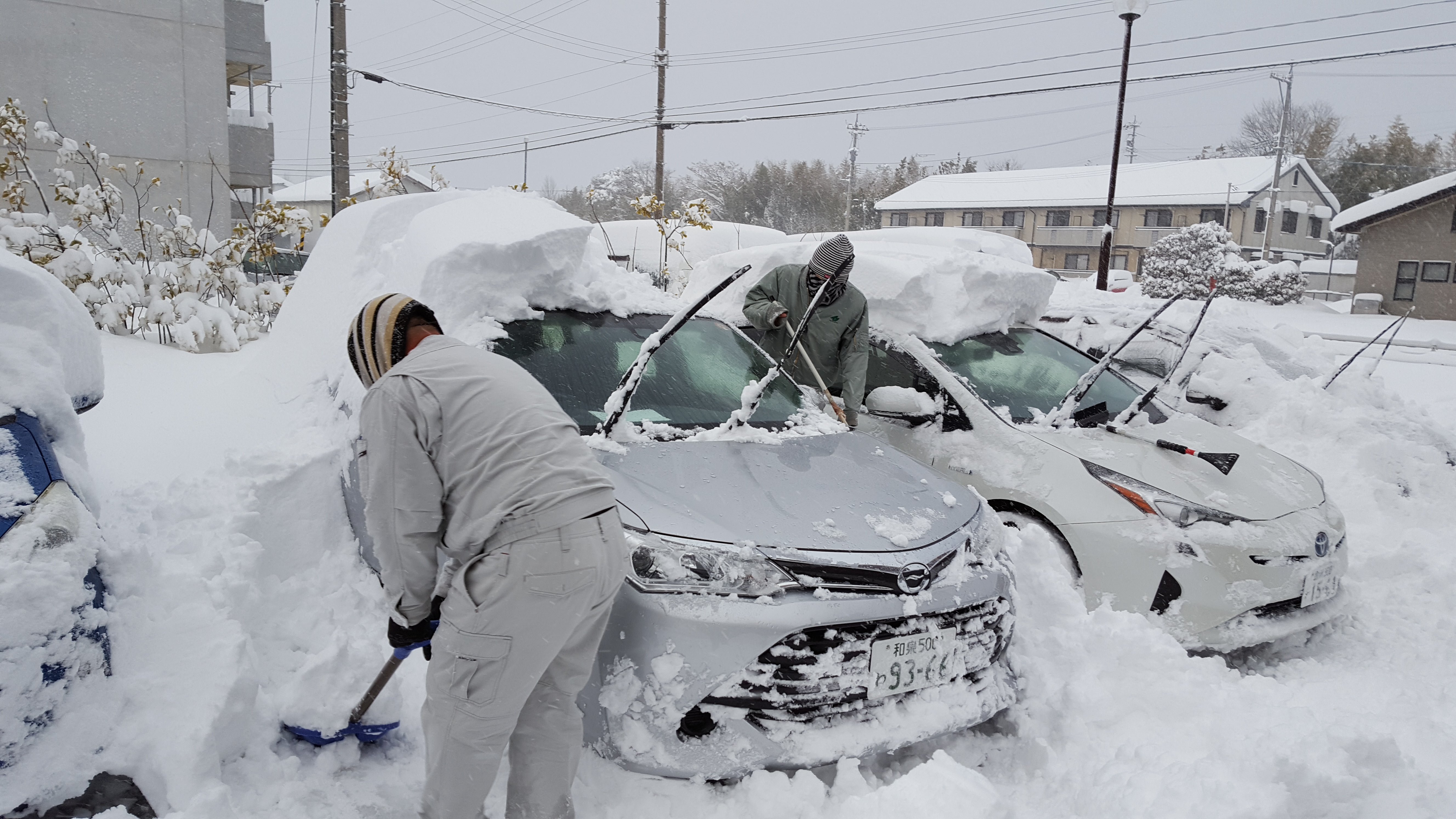 朝から雪かきです。大阪は雪が降ってもここまで積もることがないので